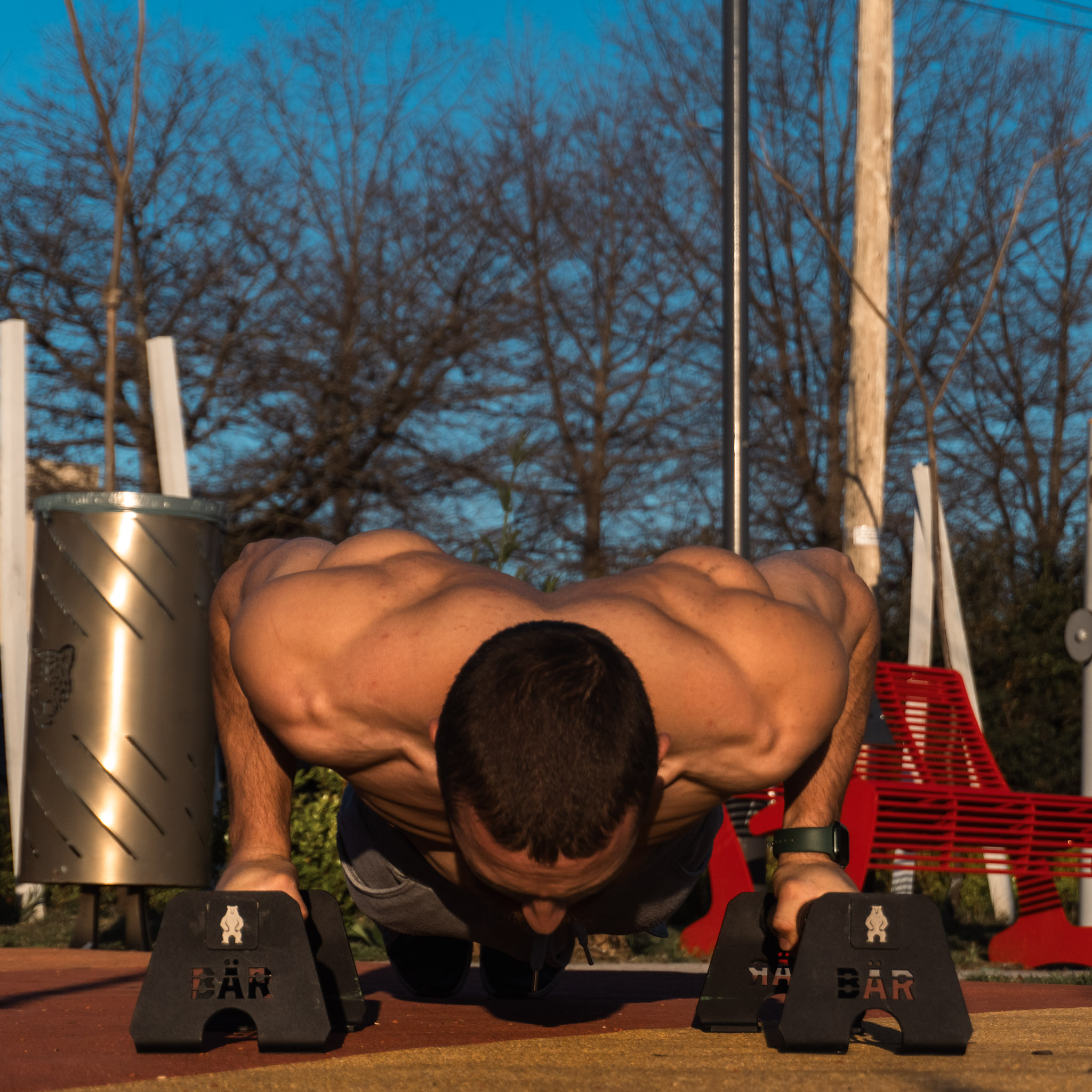 Un par de paralelas es una herramienta esencial en la práctica de la calistenia. Es un producto versátil que te permite realizar todo tipos de ejericios de empuje, adaptándose tanto a principiantes como a avanzados